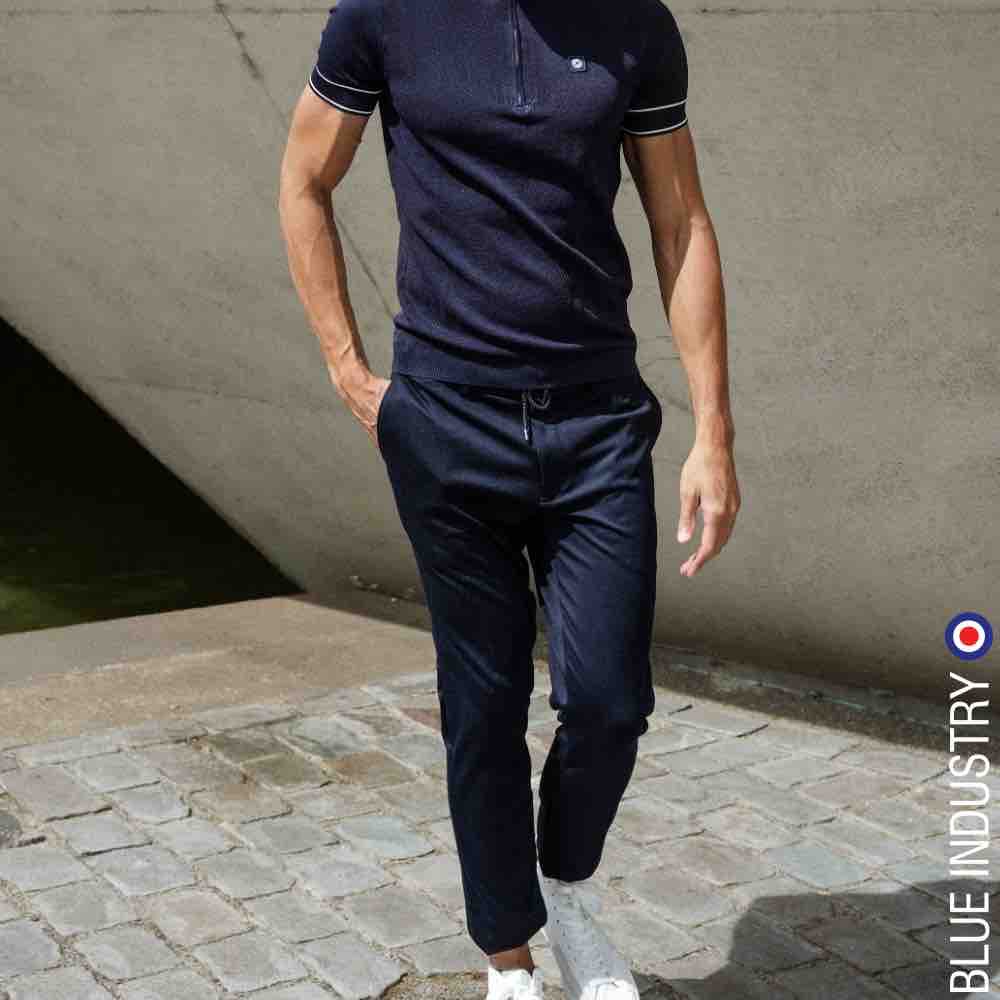 Dit zijn sportieve pantalons met een klassieke ruit, maar dan gemaakt van een gebreide stof. Normaal worden broeken in een geweven stof geproduceerd.